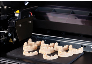 숙련된 기공사가 첨단의 3D 시뮬레이션 분석 프로그램과 3D 프린팅 기술을 사용하여 신뢰 할 수 있는 장치를 제작하고 있습니다.
