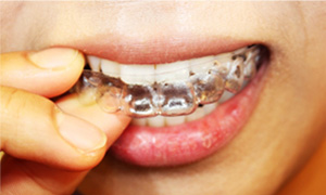 투명강화 플라스틱으로 환자의 치아에 맞게 제작하여 뺐다 꼈다 할 수 있으며 교정치료 중에도 일반 치과 치료가 가능하여 환자의
